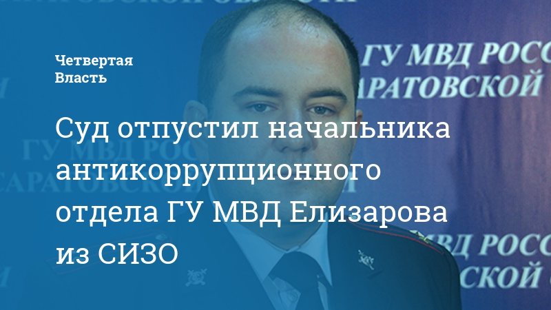 Сегодня в Волжском районе Саратова суд принял решение об изменении меры пресечения начальнику управления экономической безопасности и противодействия коррупции регионального ГУ МВД Дмитрию Елизарову. Как сообщил «Четвертой Власти» источник в СУ СКР, вместо следственного изолятора он будет под стражей в домашних условиях.