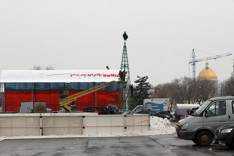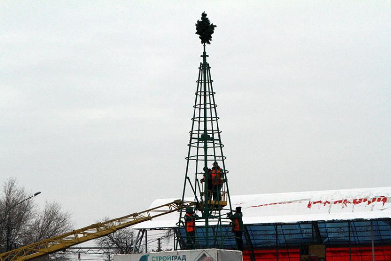 На центральной площади Энгельса Саратовской области появилась новогодняя елка. Как сообщает администрация Энгельсского района, уже смонтирован 12-метровый каркас и проводятся работы по креплению «хвои».