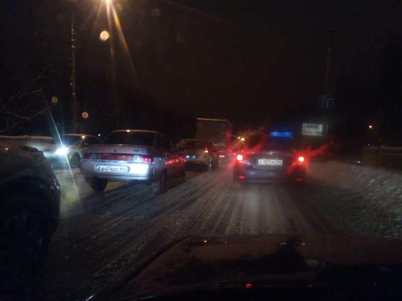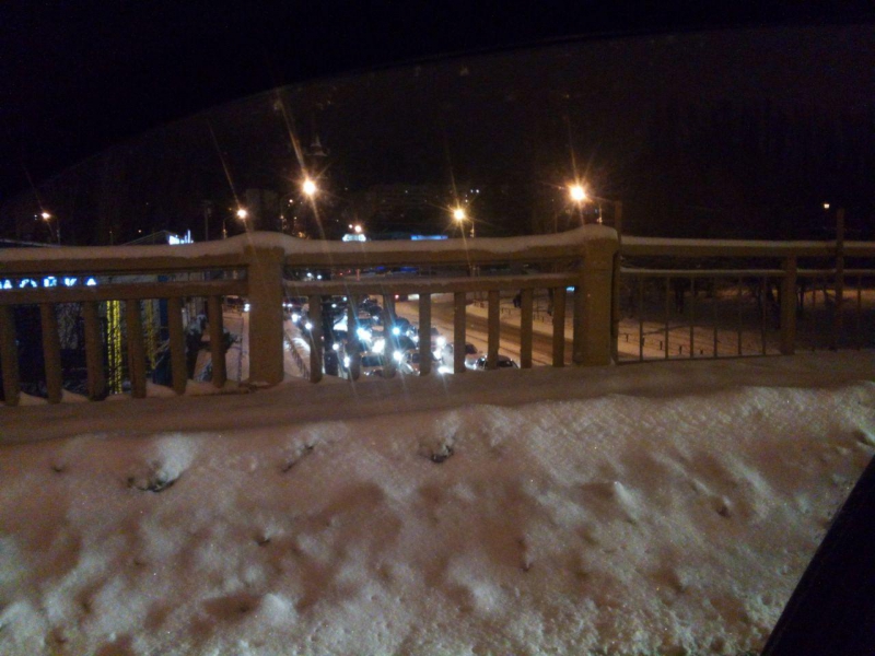 Ночной снегопад вызвал гигантские заторы в Саратове