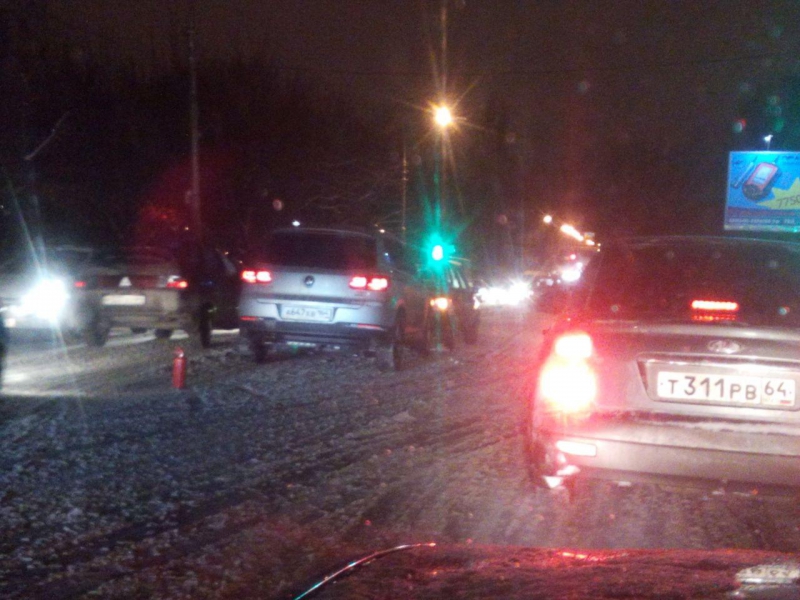 Традиционно стоят проспект 50 лет Октября, Шехурдина, 1-й проезд Танкистов, а также Чернышевского, проспект Энтузиастов и др. Большие затруднения и на Усть-Курдюмской – жители Юбилейного застряли в плотном заторе. При этом центральная часть города относительно свободна.