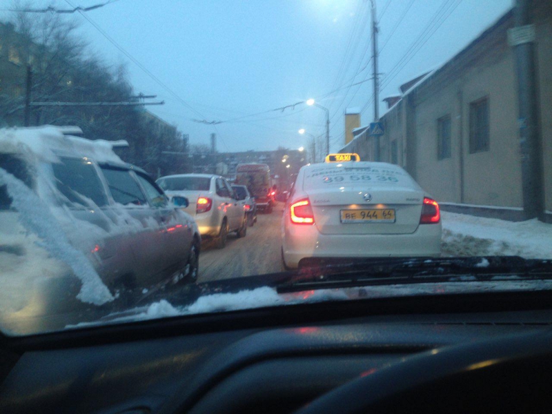 В настоящее время на территории Саратова наблюдаются огромные автомобильные пробки. Одной из причин этого является выпавшее ночью большое количество снега.