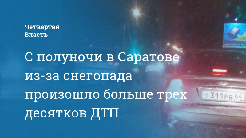 Сегодня с полуночи по настоящее время в Саратове зарегистрировано 36 дорожно-транспортных происшествий. В связи с прошедшим снегопадом сотрудники регионального управления ГИБДД просят водителей быть предельно внимательными на дорогах и не создавать аварийных ситуаций и заторов.