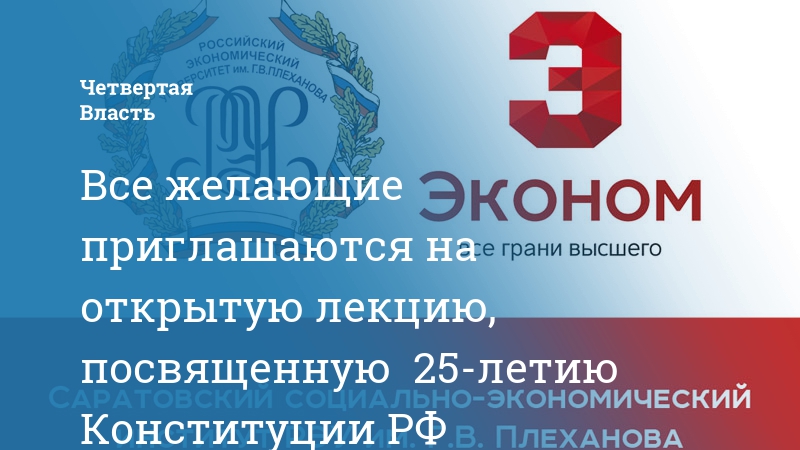 Завтра, 12 декабря, в Саратовском социально-экономическом институте РЭУ им. Г.В. Плеханова состоится открытая лекция на тему: «Конституция Российской Федерации: новации и традиции отечественного конституционализма», посвященная 25-летию принятия Конституции РФ.