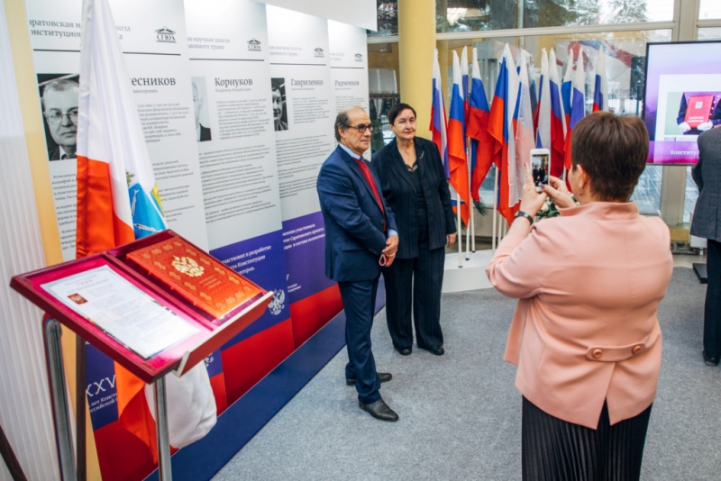 Глава региона поблагодарил организаторов выставки, а также отметил бесценный вклад ученых СГЮА и историческую значимость их участия в подготовке проекта действующей Конституции РФ.