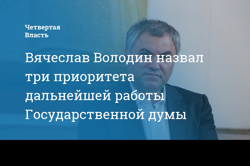 Вячеслав Володин назвал три приоритета дальнейшей работы Государственной думы