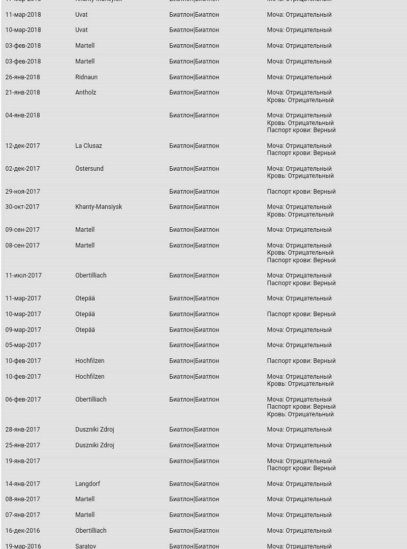 По словам Логинова, речь идет о периоде в начале 2017 года, когда он бегал всего 2 месяца. Он также приложил фото документа, где отражены результаты проб, везде значится «отрицательно».