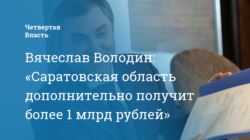 Вячеслав Володин: «Саратовская область дополнительно получит более 1 млрд рублей»