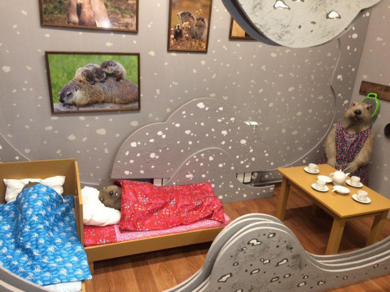 Один из залов оформлен в виде «квартиры» сурков со спальней, кухней, кладовкой. Юных посетителей в игровой форме познакомят с образом жизни животных. При музее действует кинозал, гостям демонстрируют фильм о повадках сурков.