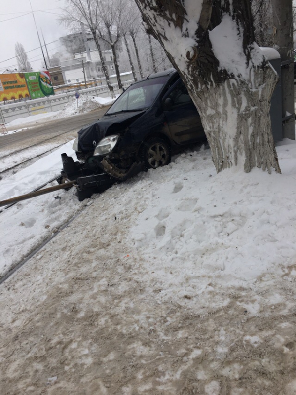 В региональном управлении ГИБДД рассказали, что, по предварительным данным, около 10.40 на перекрестке проспекта 50 лет Октября и Саперной водитель «Рено» уходил от столкновения с другой машиной и вылетел с дороги, врезавшись в столб. Пострадавших в дорожном инциденте нет. Движение трамваев еще не восстановлено.