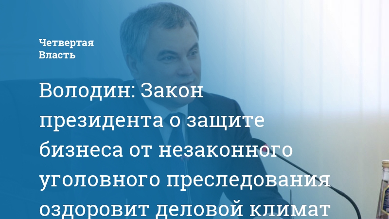Володин: Закон президента о защите бизнеса от незаконного уголовного преследования оздоровит деловой климат в стране