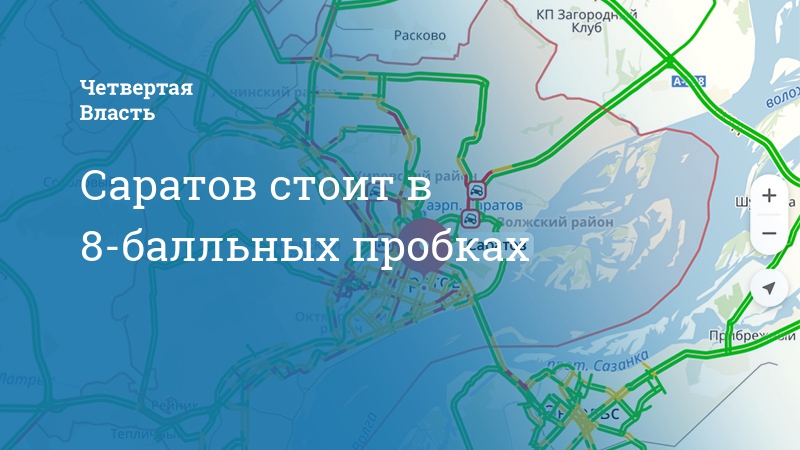 Сегодня утром на улицах Саратова наблюдаются уже привычные заторы, которые Яндекс оценивает как пробки в 8 баллов.
