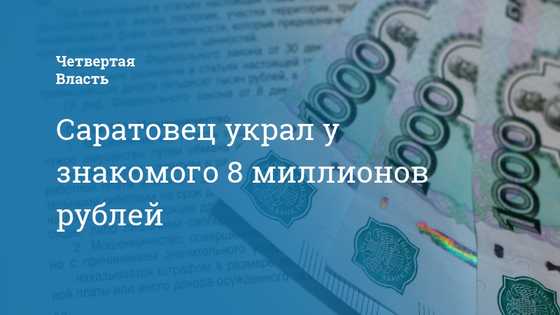 Саратовец украл у знакомого 8 миллионов рублей