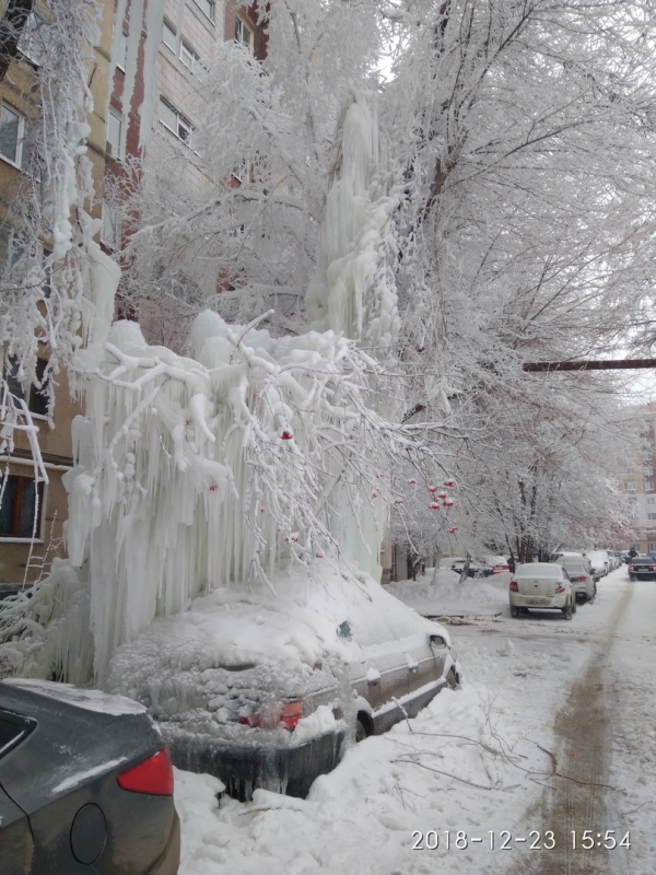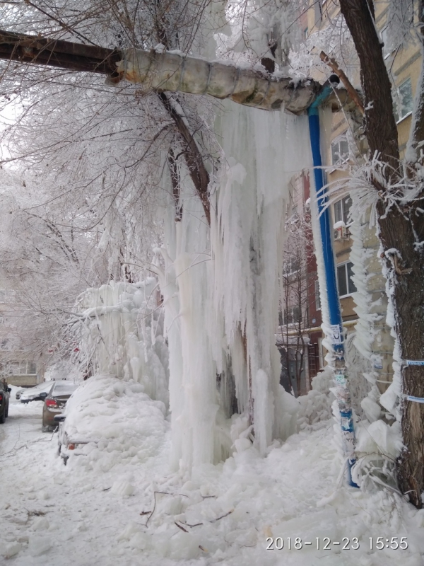 По его словам, это происшествие случилось у дома №1 по улице Топольчанской (пересечение с Антонова). В плен образовавшейся ледяной экспозиции попал автомобиль, который был припаркован под аварийной трубой.