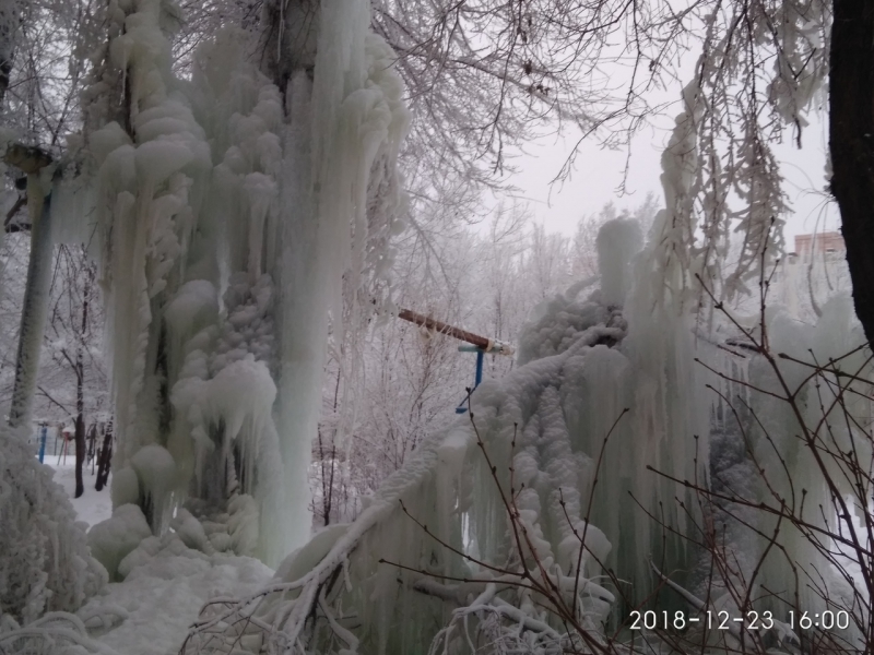 В Солнечном после коммунального ЧП появилась опасная «экспозиция» изо льда