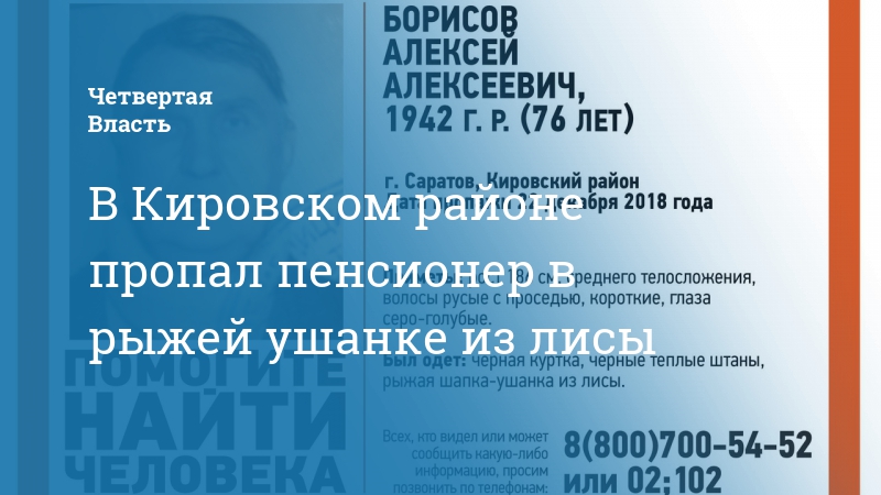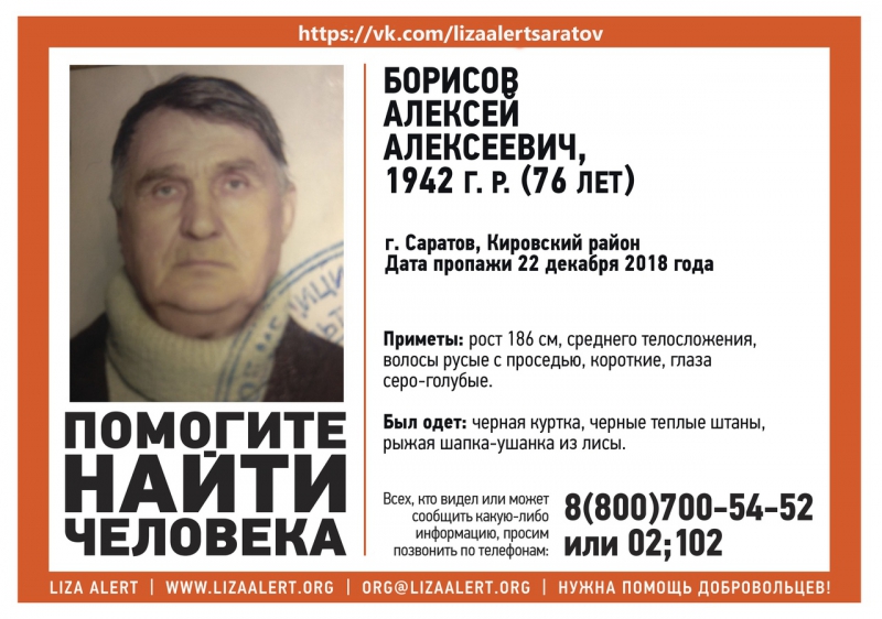 В Кировском районе Саратова пропал 76-летний Алексей Борисов. Об этом сообщает поисковый отряд «Лиза Алерт».
