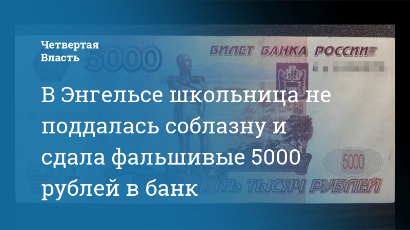 В Энгельсе школьница не поддалась соблазну и сдала фальшивые 5000 рублей в банк