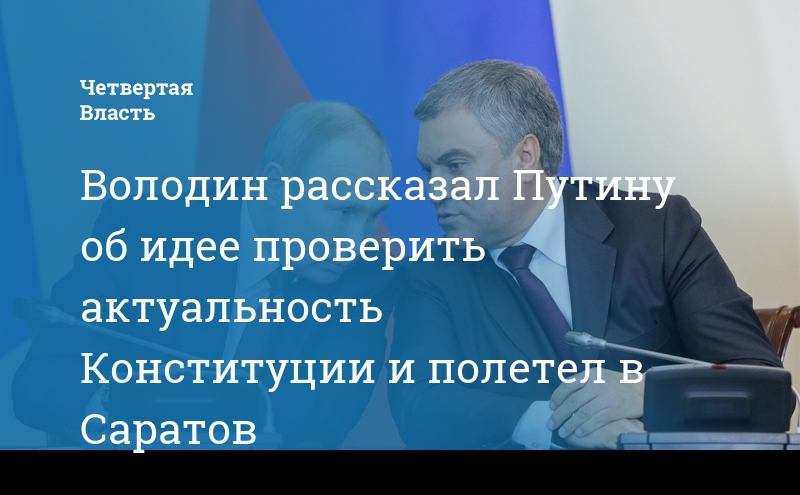 Володин рассказал Путину об идее проверить актуальность Конституции и полетел в Саратов