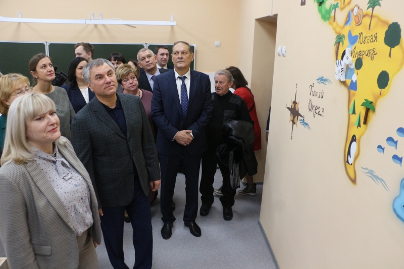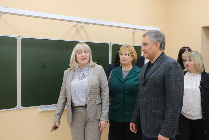 Володина провели по кабинетам начальных классов, он пообщался с учителями. Директор лицея Юлия Ермакова заявила, что теперь можно увеличить численность детей в начальных классах.