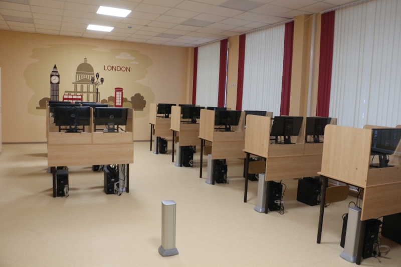 В кабинеты уже завезли необходимое оборудование, а в кабинетах для младшеклассников стилизовали стены под сказку «Алиса в стране чудес» и карту мира.