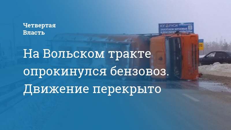 По предварительным данным, из бензовоза произошла утечка солярки, поэтому движение по Вольскому тракту от остановки «Хеппи Молл» до поселка Зоринский перекрыто. Обстоятельства происшествия уточняются.