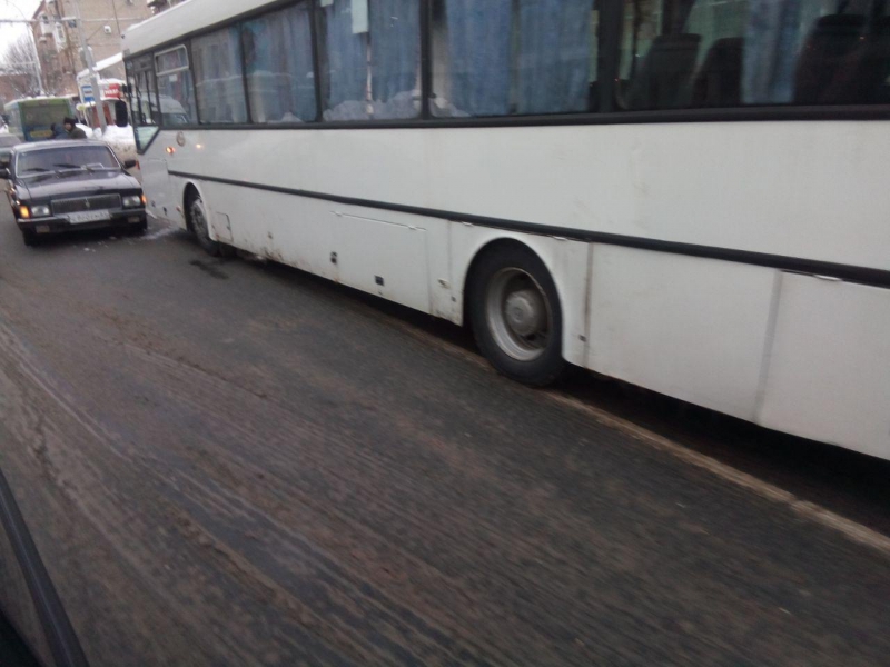 Из-за заваленной снегом обочины автобус попал в ДТП и перекрыл Московскую