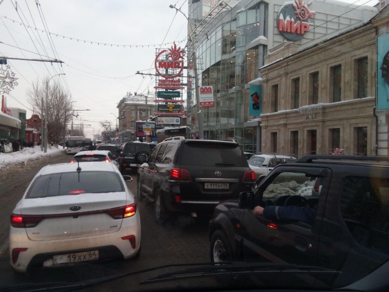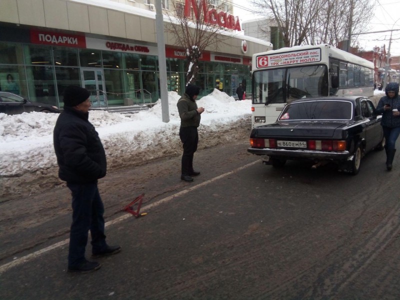 Сегодня днем в центре Саратова произошла авария с участием автобуса и автомобиля «Волга». Как передает корреспондент «Четвертой Власти» с места, транспортные средства заняли сразу две полосы движения.