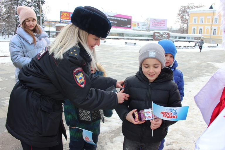 Сегодня в Саратове сотрудники регионального управления ГИБДД провели новогоднюю акцию, в ходе которой вручали горожанам подарки. Мероприятие состоялось в рамках всероссийской акции МВД «Полицейский Дед Мороз».