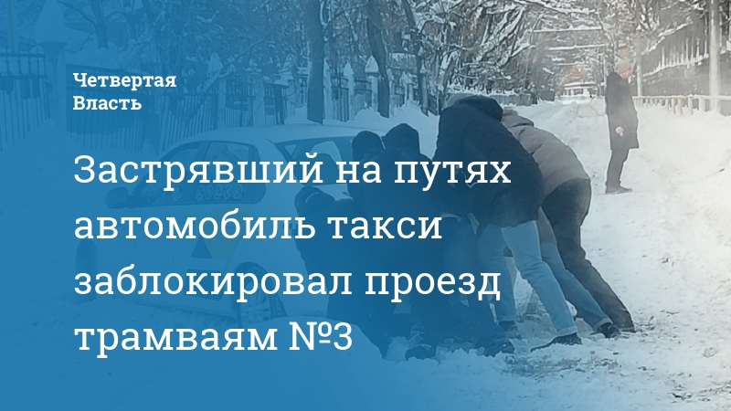 Застрявший на путях автомобиль такси заблокировал проезд трамваям №3