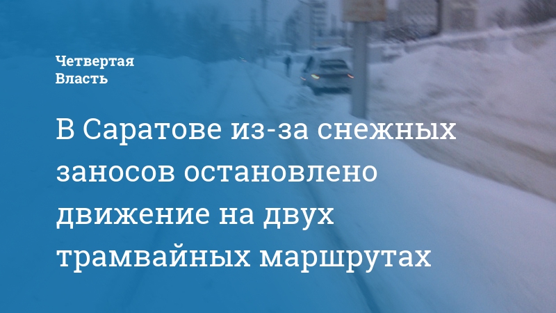 Сегодня с утра в Саратове из-за неочищенных от снега путей остановлено движение на двух трамвайных маршрутах. Снежные заносы на дороге также повлияли на схему движения троллейбусов маршрута №4, рассказали «Четвертой Власти» администраторы группы «Трамваи и троллейбусы Саратова» в соцсетях.
