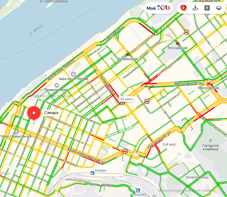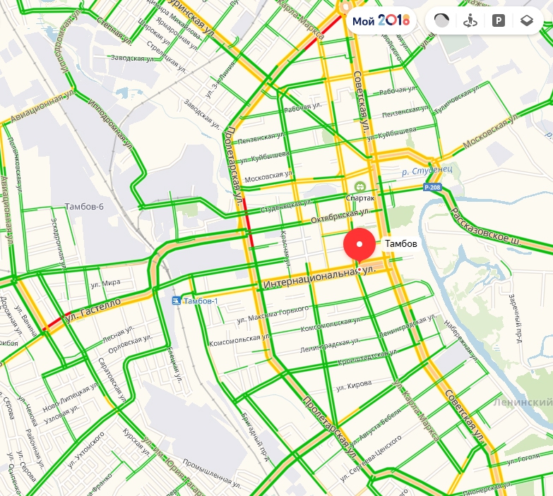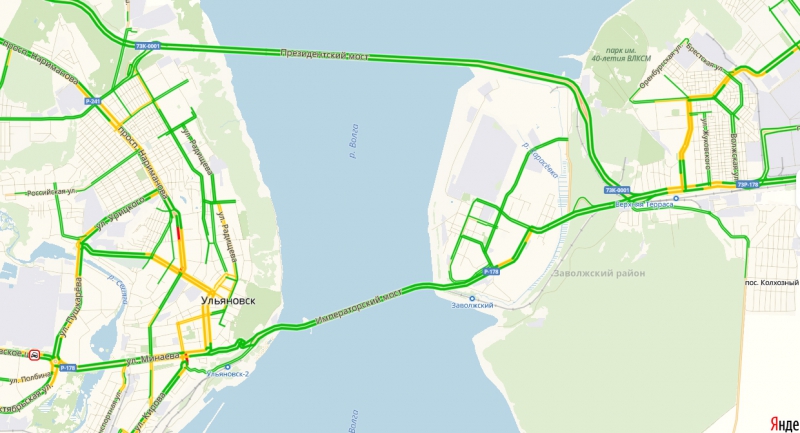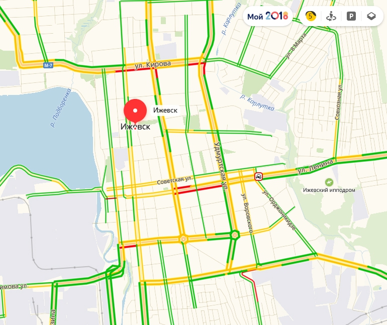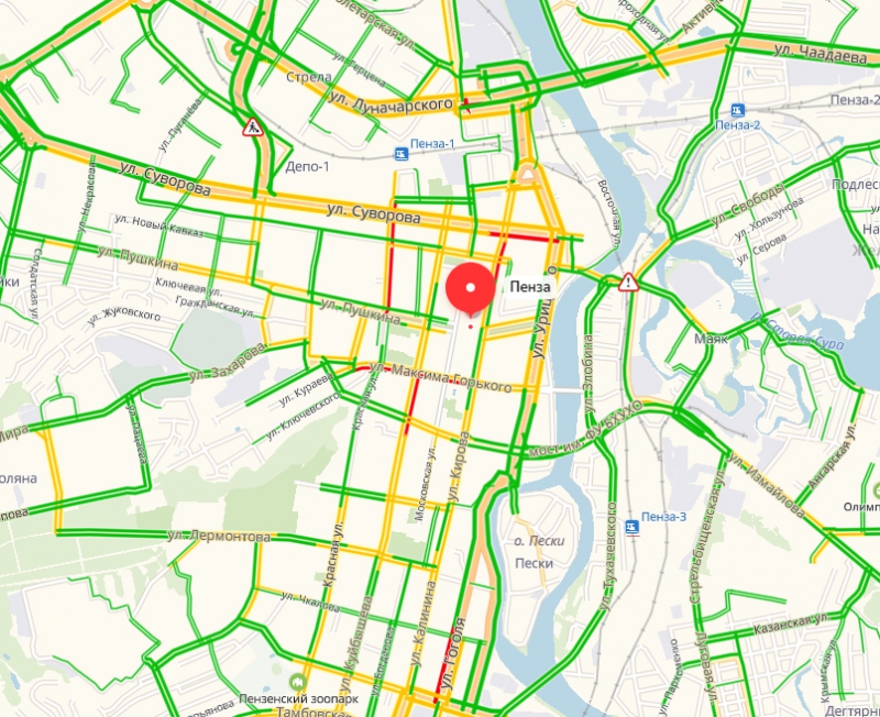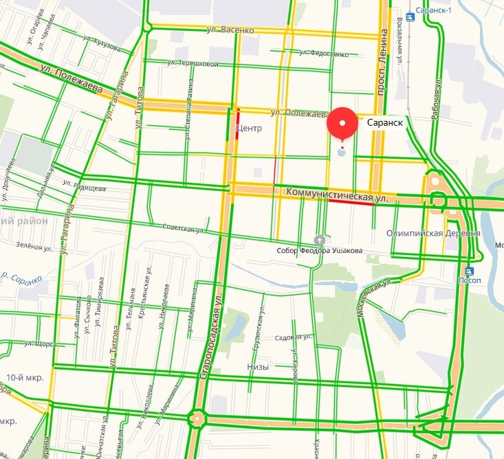 В Ульяновске, Оренбурге, Пензе, Саранске, Кирове, Йошкар-Оле, Тамбове сервис не показывает количество баллов. Однако при виде большинства улиц, отмеченных зеленым цветом, становится ясно, что там проезд практически свободный.