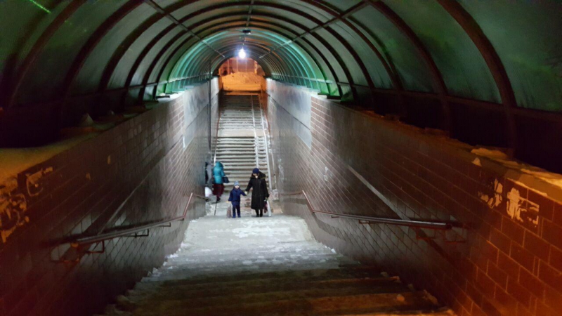 На Строителей школьник сломал руку при падении с крыши подземного перехода