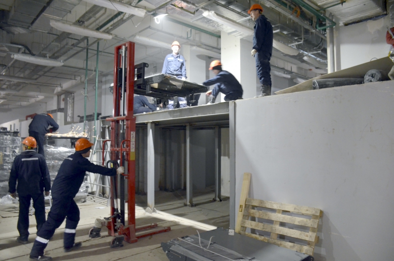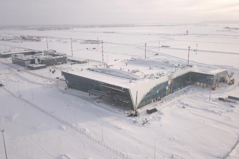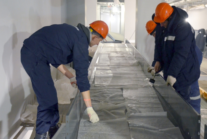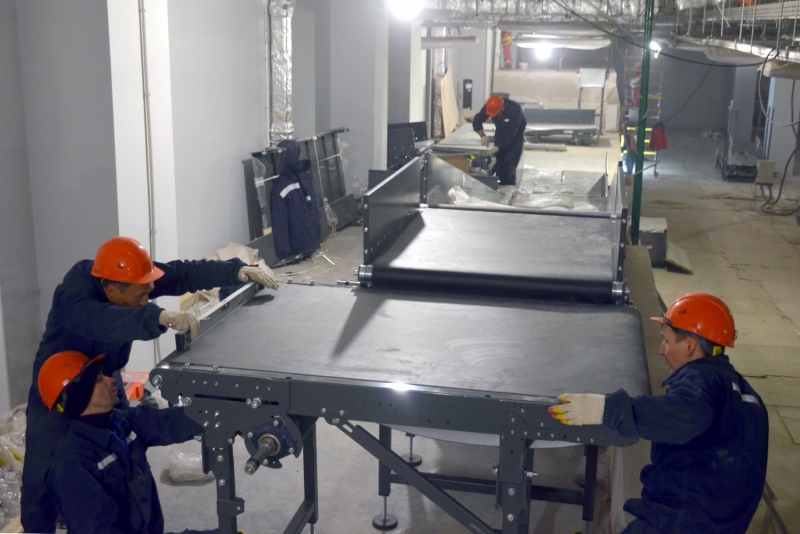 В аэропорту Гагарин рабочие устанавливают систему обработки багажа