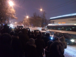 Толпа саратовцев едва не перекрыла дорогу в ожидании автобусов