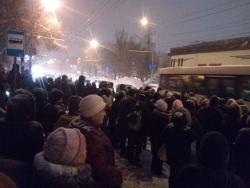 По словам корреспондента «4В», на остановке скопилось не меньше 200 человек. Их численность почти не уменьшается - на смену тех, кому удалось уехать, приходят новые.