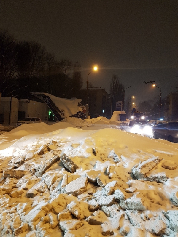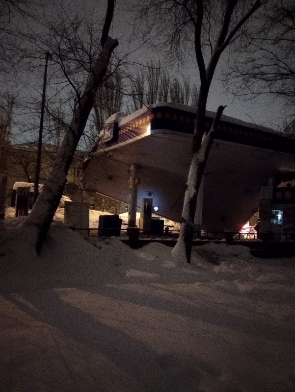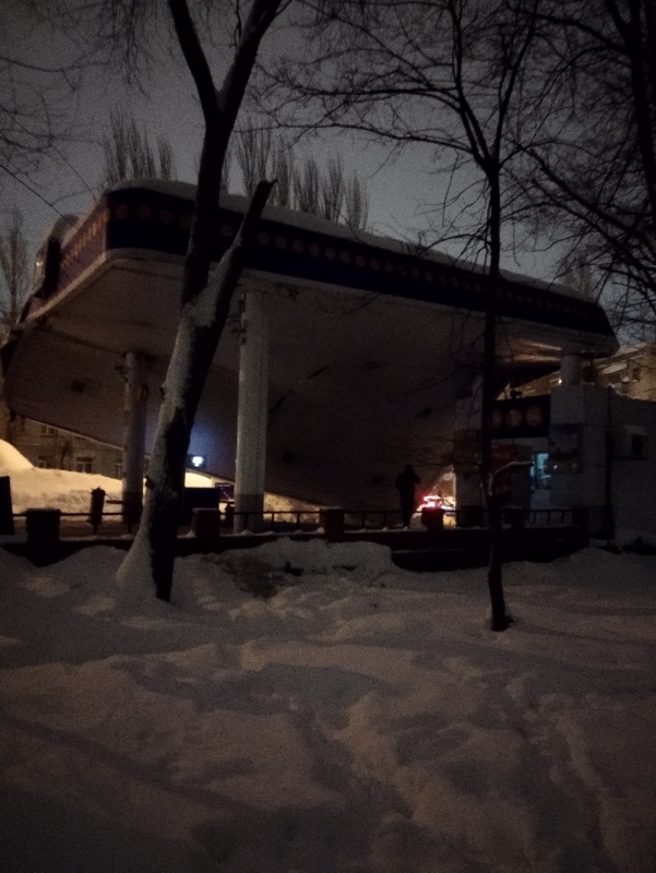По словам горожан, речь идет о заправке ТНК на углу 2-й Садовой и Аткарской. Под тяжестью снега надломился один из подпорных столбов, а половина крыши упала на землю.