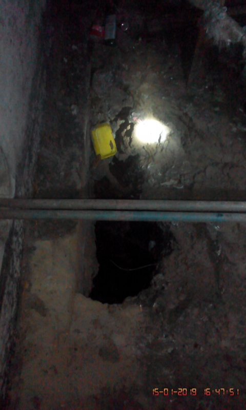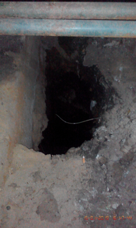 Провал диаметром примерно метр на метр и около шести метров в глубину наблюдается под подъездом №3. По словам Ильи, вокруг ямы видно просадку, то есть, вероятно, что скоро она станет еще больше.