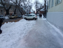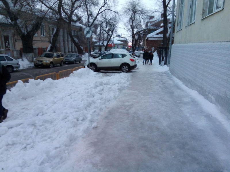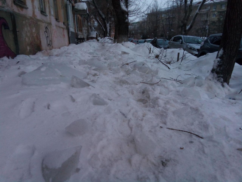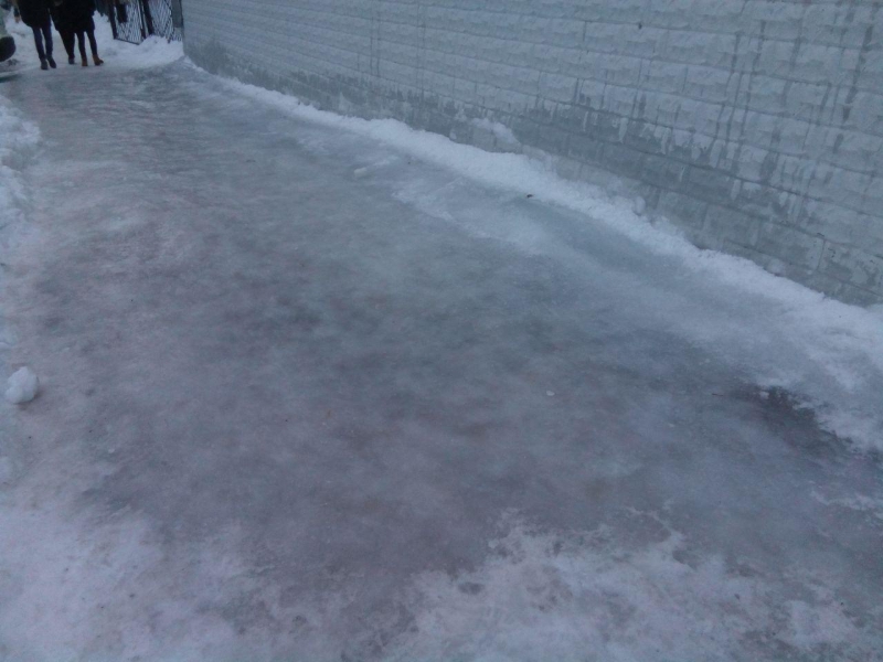 «В школу №9 ходят дети со всей округи, некоторых на машине привозят, но все равно по тротуару идти-то приходится. Лед отбили вот прям перед входом в школу, а рядом только ползком пробраться можно или на коньках. Школа находится на улице Соляной, там же недалеко министерство образования, у них все вычищено, а на обратной стороне одни «козьи тропы» и глыбы льда, которые с крыш скинули», - пожаловалась собеседница.