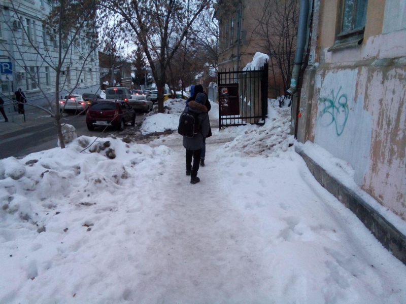 «Понимаете, у нас маленьких деток некоторых бабушки провожают до школы. Идет ребенок спотыкается или скользит, а рядом бабушка несчастная кое-как пробирается и внука еще пытается удержать. И это все в центре города, на глазах у чиновников минобраза происходит! Получается, что на детей наших просто наплевать всем», - возмутилась саратовчанка.