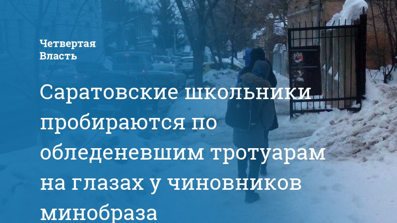 Саратовские школьники пробираются по обледеневшим тротуарам на глазах у чиновников минобраза