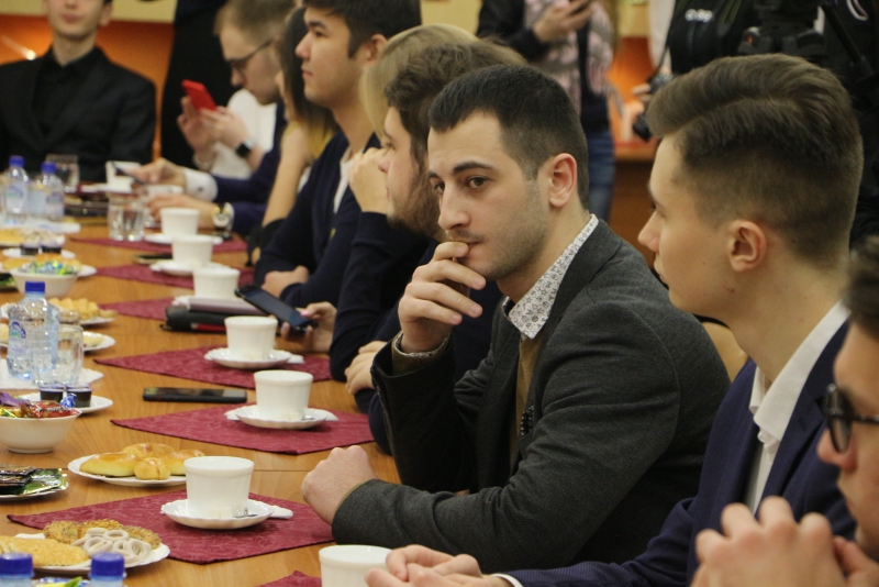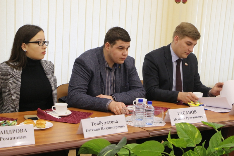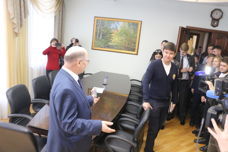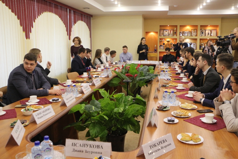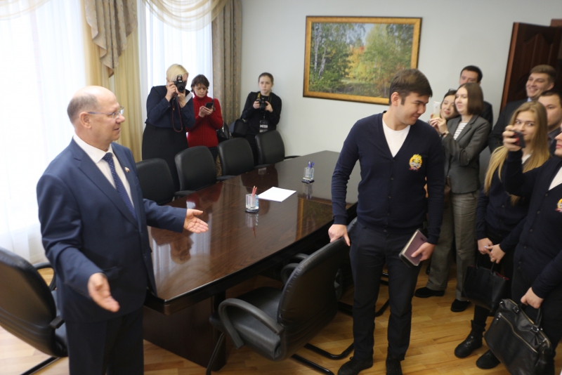 Затем все они переместились в парламентский центр. Председатель думы поинтересовался у студентов, знают ли они историю Татьяниного дня. Однако собеседники молчали, тогда Кузьмин провел небольшую лекцию, почему именно 25 января считается праздником студенчества.