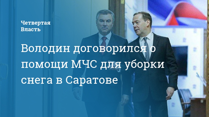 Министерство по чрезвычайным ситуациям РФ окажет помощь Саратовской области в борьбе со снежной стихией. Об этом стало известно сегодня по итогам встречи председателя Государственной думы Вячеслава Володина с премьер-министром Дмитрием Медведевым.
