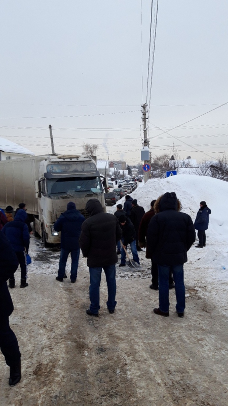 Еще одна фура не может преодолеть подъем по улице Танкистов, рядом с ней сломался автобус маршрута №90 (по словам автора поста, у автомобиля повреждена подвеска). На 3-м Товарном подъезде (крайний правый ряд улицы Политехнической в сторону Заводского района) движению транспорта очередной большегруз, который полностью перекрыл одну из полос движения.