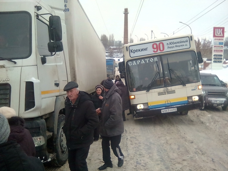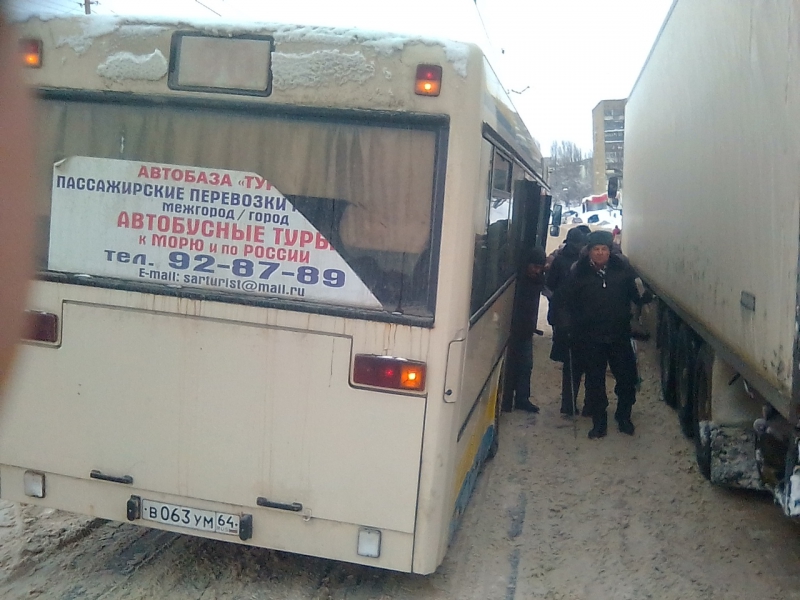 Застрявшие фуры и сломавшийся автобус мешают движению в Саратове