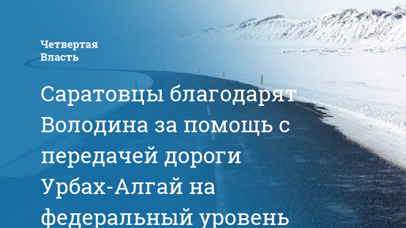 Жители районов Саратовской области, через которые проходит дорога Урбах-Алгай, с радостью восприняли информацию о передаче трассы с регионального на федеральный уровень. Об изменении ее статуса договорились председатель Государственной думы Вячеслав Володин и премьер-министр РФ Дмитрий Медведев.
