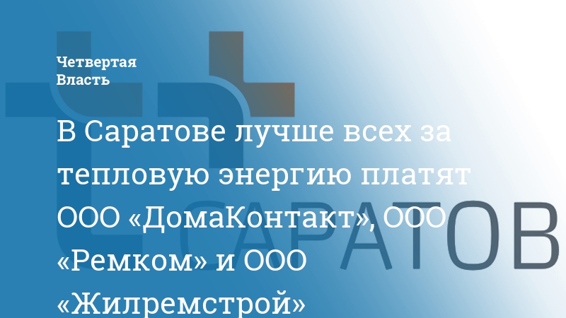 В Саратове лучше всех за тепловую энергию платят ООО «ДомаКонтакт», ООО «Ремком» и ООО «Жилремстрой»