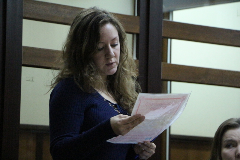 С ходатайством о продлении ареста до 5 мая (т.е. на 3 месяца) вышла следователь Елена Колосова. По ее словам, расследование дела на данный момент завершено, все фигуранты знакомятся с материалами. Абасову зачитали 6 томов из 254. На ознакомление потребуется не менее 3 месяцев.