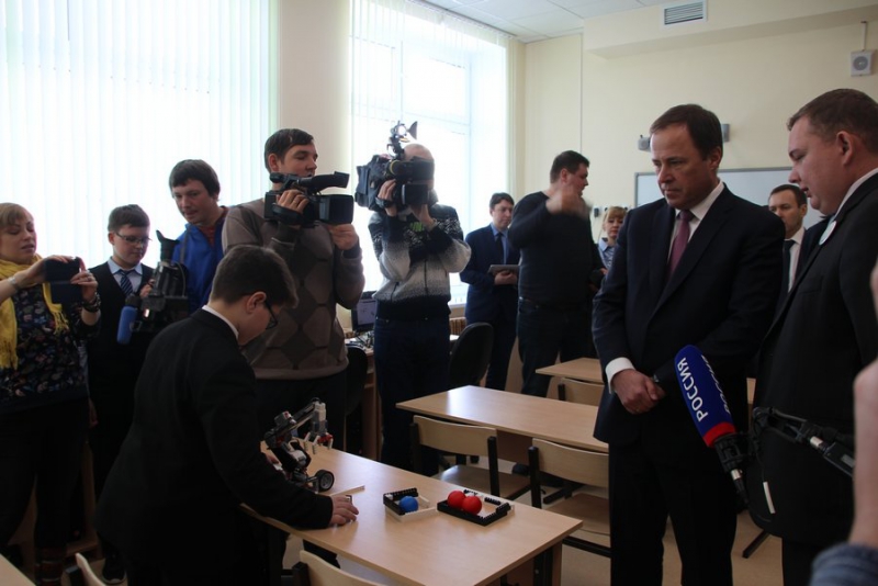 Особенно впечатлил его класс, где дети занимались робототехникой. Дети собирали роботов-манипуляторов небольшого размера для перевозки грузов.