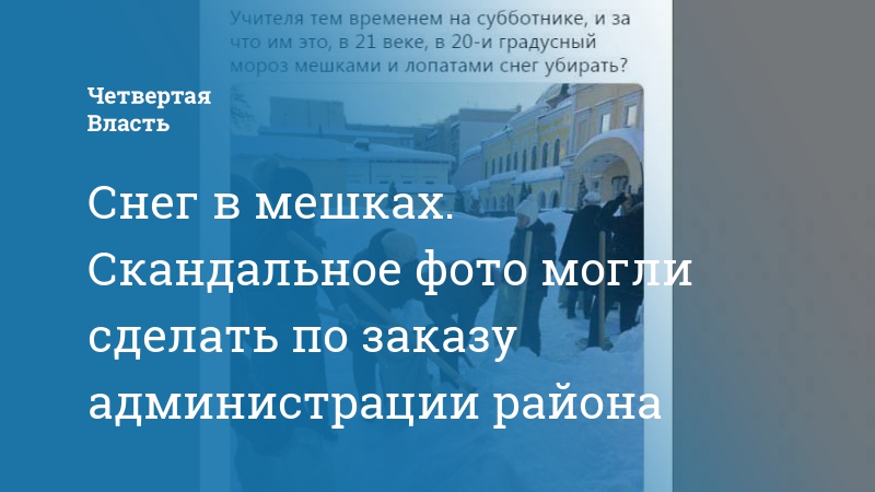 По словам источника, знаменитый снимок из 95-й школы со «снегом в мешках» также являлся «отчетным», однако учитель не только отослал его чиновникам, но и выложил в соцсетях. Фотографию подхватили пользователи, затем СМИ и, наконец, она приобрела масштаб всероссийского скандала.