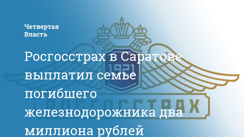 Росгосстрах в Саратове выплатил семье погибшего железнодорожника два миллиона рублей