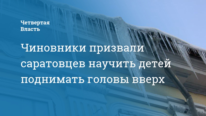 «Самим родителям следует научить ребенка поднимать голову наверх и смотреть на крышу. Все-таки управляющие компании не могут жить на крыше. Вот, например, сосулька, которая была самой большой в городе, размером в 5 этажей. Ее убрали, а через 2 дня – то же самое. Сейчас они думают, как ее убирать, вышку найти не могут», - рассказал Александр Мышев.